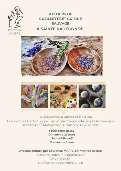 Lors d'une balade où je vous apprends à identifier les principales plantes sauvages comestibles, nous les récoltons puis nous revenons nous poser tranquillement pour déguster un goûter nature. Ensuite nous cuisinons ensemble les plantes pour nous préparer un délicieux repas aux goûts sauvages et inconnus.