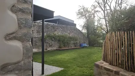 Le logement dispose également d'un jardin extérieur, d'une terrasse avec une table pour manger et d'une buanderie où l'on peut garer des vélos.