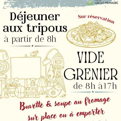 Vide grenier et déjeuner aux tripous organisés par l’APE de l’école Jacques Prévert à Luc.